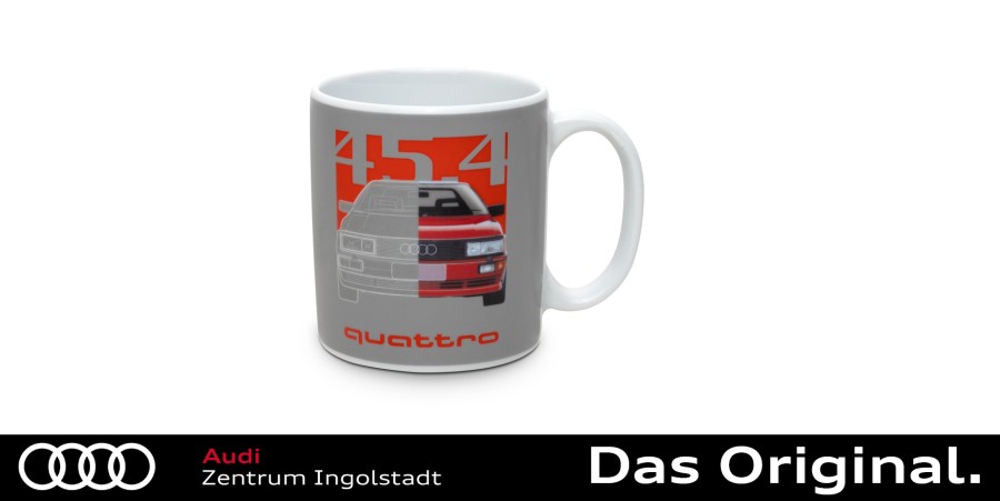 Zum 45-jährigen Jubiläum des Audi quattro: Die Audi quattro Tasse in exklusivem quattro Coupé Design.
