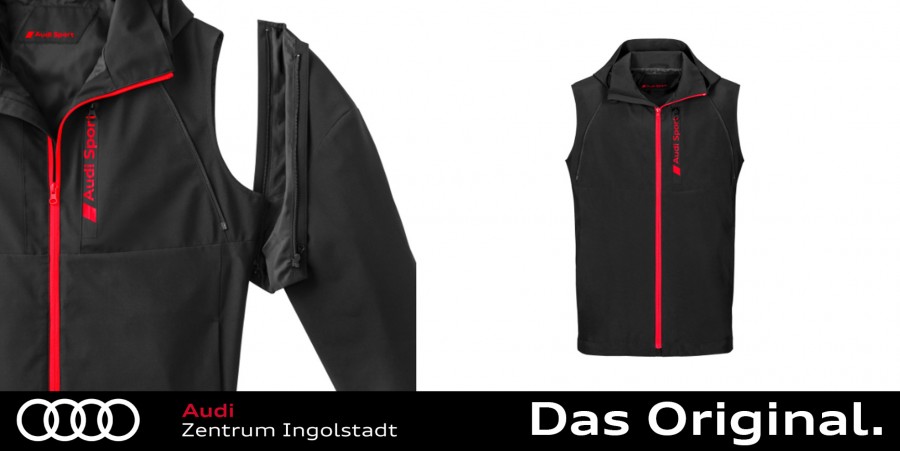 Die Audi Sport Zipoffjacke eignet sich ideal als leichte Sommer- oder Übergangsjacke und kann zur Weste umfunktioniert werden.
